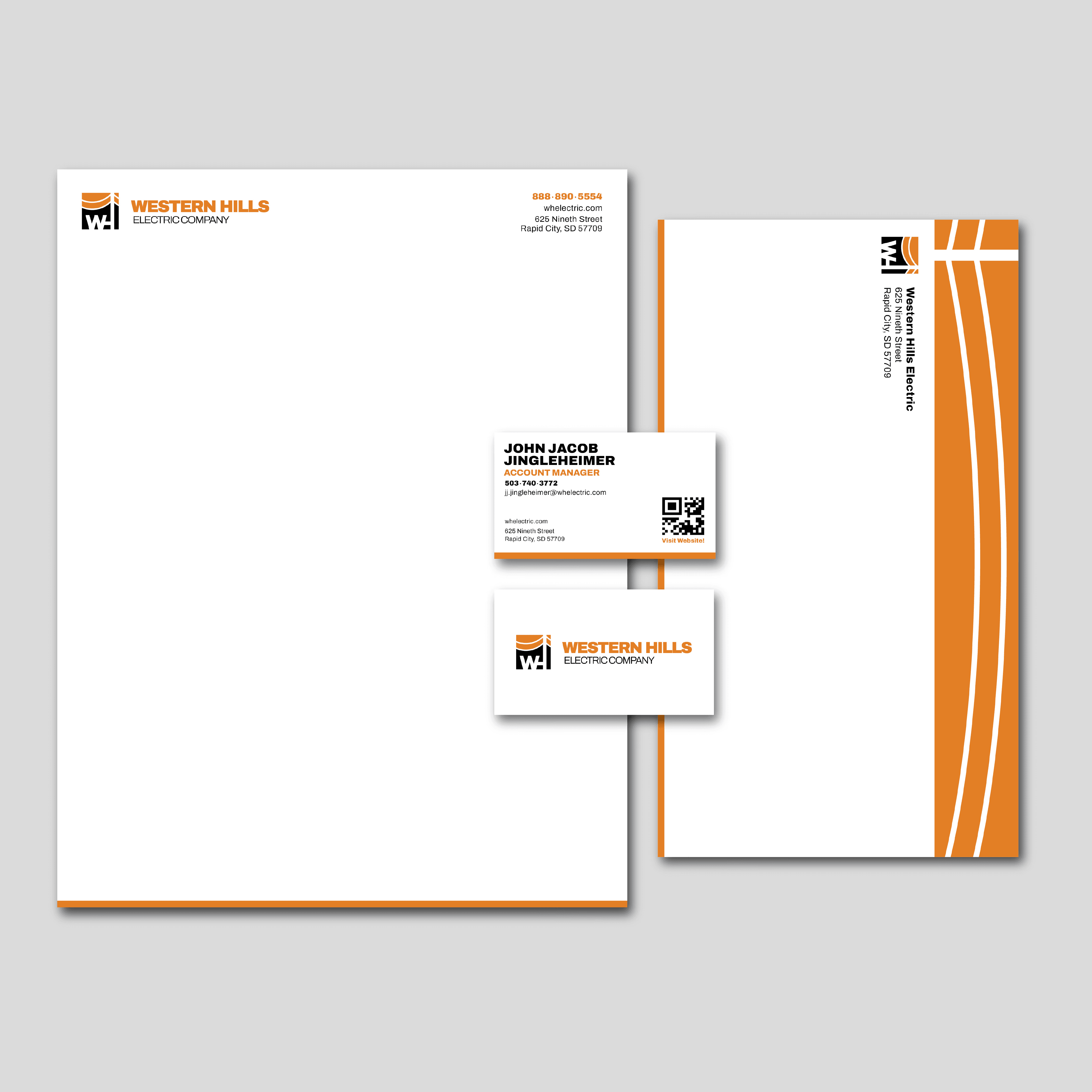 Repeating elements like the footer, horizontal logo, and the strong alignment frame the composition. Consistent margins reinforce the geometric structure and bold identity of the brand, reflecting the company’s reliability and ingenuity. The abstracted power line pattern communicates the service they provide as well as the company's innovative approach to delivering energy.